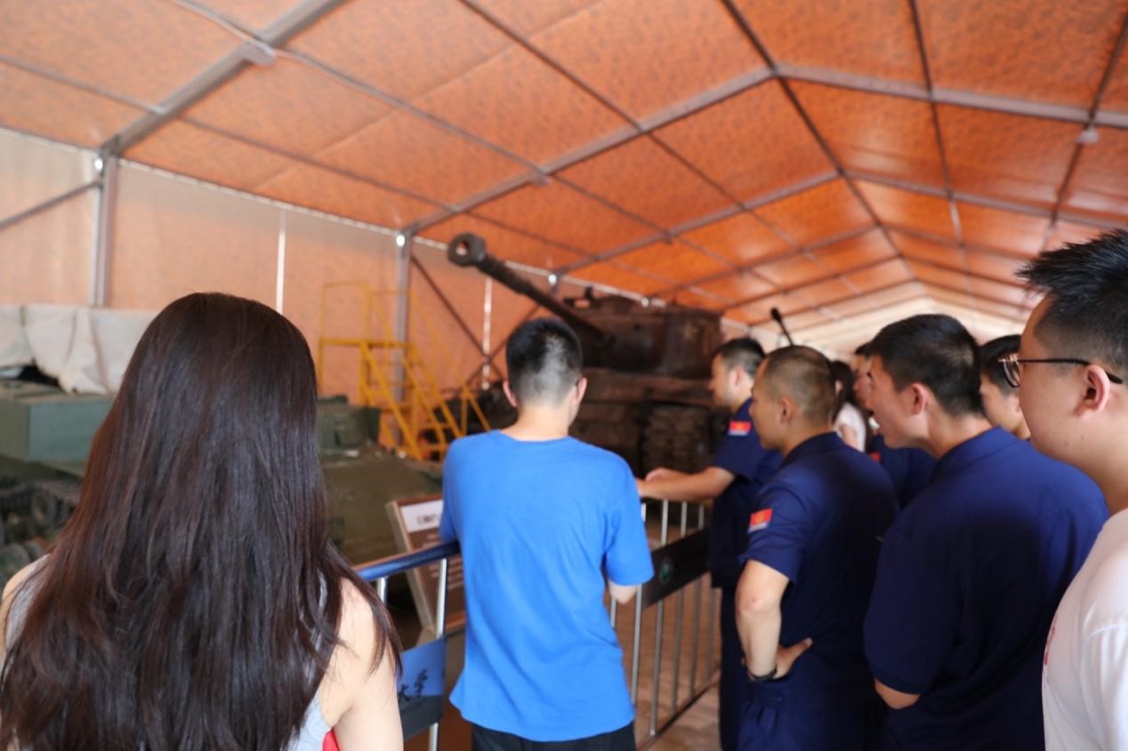 最后一站来到了国防文化广场。作为学校传承“延安根、军工魂”红色基因的重要文化基地,这里展示了一段刻骨铭心的峥嵘岁月。麻豆传媒 2022级马骏灏同学为大家带来了一场精彩的讲解,每一辆装甲,每一枚弹孔,都记录着我们国家在危急时刻无数先烈和战士的英勇付出。在参观学习后,各位党员深刻感受到了战争时期的残酷与中国人民的智慧,更加珍惜今日来之不易的美好生活。