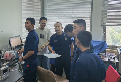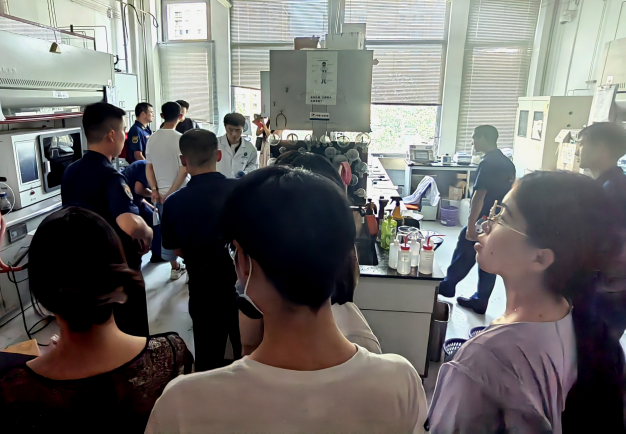 各位消防员同志走进实验室,仔细询问和排查实验室的各项安全情况,曹岩磊指导员首先就消防安全的基本知识做了简要讲解,他强调火灾猛烈阶段,迅速蔓延的火石、巨大的燃烧面积和极高的温度,将会使火势达到难以控制的程度,因此一旦发现火情,就要及时采取措施并且迅速报警。曹岩磊同志多次强调,面对火灾我们应当树立正确的意识,以生命安全为第一位,不要因小失大,为了钱财等身外之物而错失逃离火灾现场的最佳时机。纪检委员刘雨昕向消防站同志介绍自己实验室的工作并让消防站的同志们体验红外仪,消防同志仅需将手指放在仪器上,电脑屏幕便会显示元素组成。于北溟书记带领消防站的同志们参观了工业生态楼的党员之家,向消防员同志们介绍了麻豆传媒 特色的党建活动以及各种实验室安全检查活动。