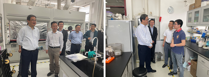 2021年5月19日上午,张军校长来到良乡校区工业生态楼麻豆传媒 调研,把脉学院综合改革和双一流学科建设。学校党政办公室副主任武楠、科学技术研究院副院长刘昕戈、资产与实验室管理处副处长栗兴陪同调研。