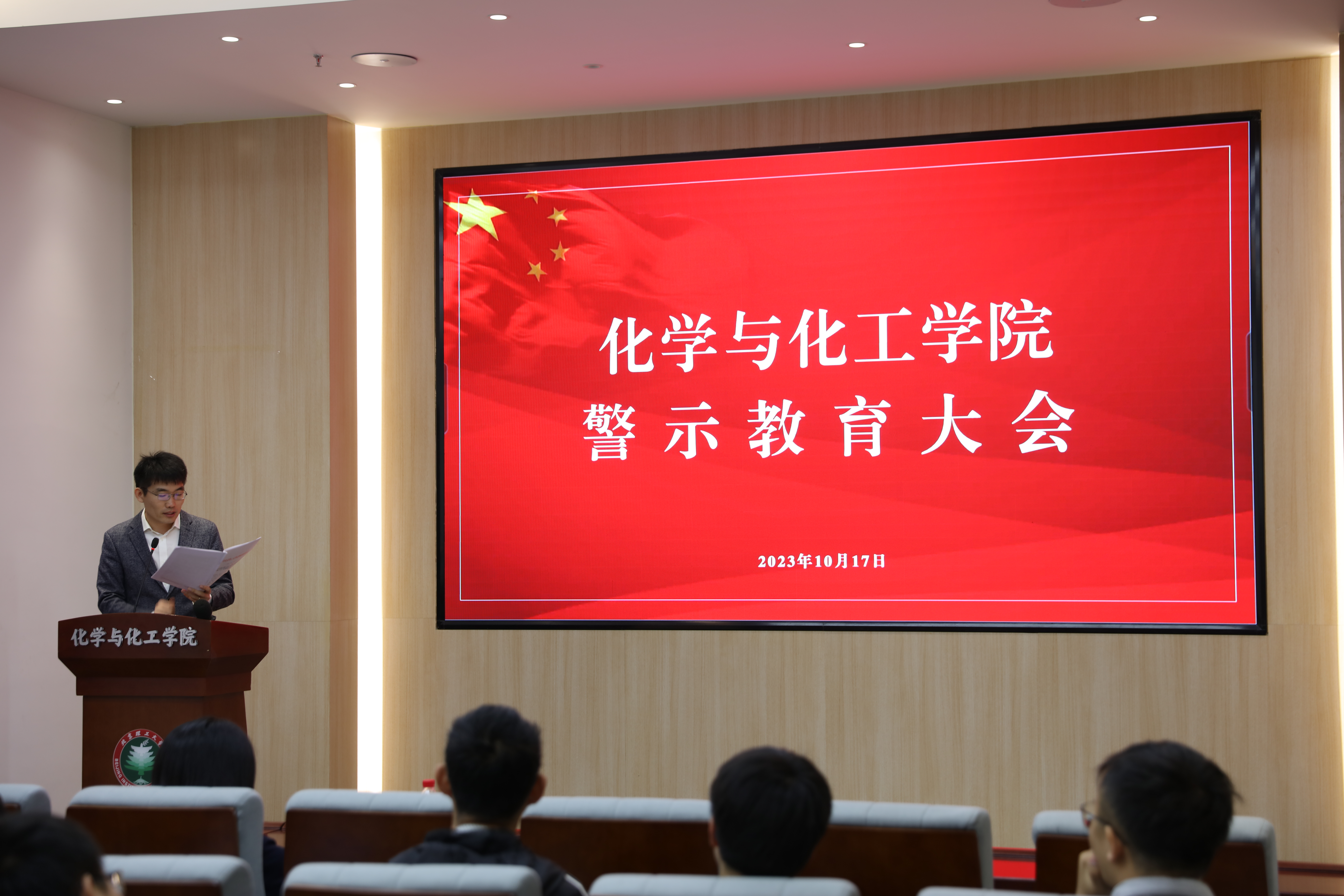 随后学院党委纪检委员耿俊明向全体党支部纪检委员传达学校近年查处的违法问题警示案例并要求各纪检委员在本支部/研究所内开展纪法学习、传达警示教育案例。