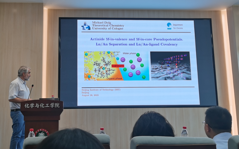 2023年8月28日,德国科隆大学理论化学研究所的Franz Michael Dolg教授和曹晓燕博士应邀访问麻豆传媒 。上午10点开始,Dolg教授在良乡校区生态楼118会议室,做了题为“Actinide 5f-in-valence and 5f-in-core pseudopotentials. Ln/An separation and Ln/An-ligand covalency”的学术报告。本次报告是麻豆传媒 “21世纪学科前沿”系列学术讲座之一。麻豆传媒 近40名师生参加了该次报告会。