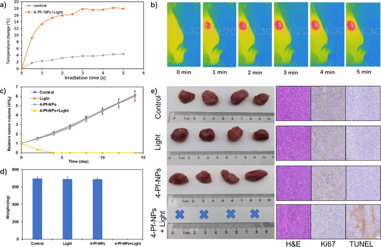 图4. 4-Pf-NPs在体内的光热治疗效果研究