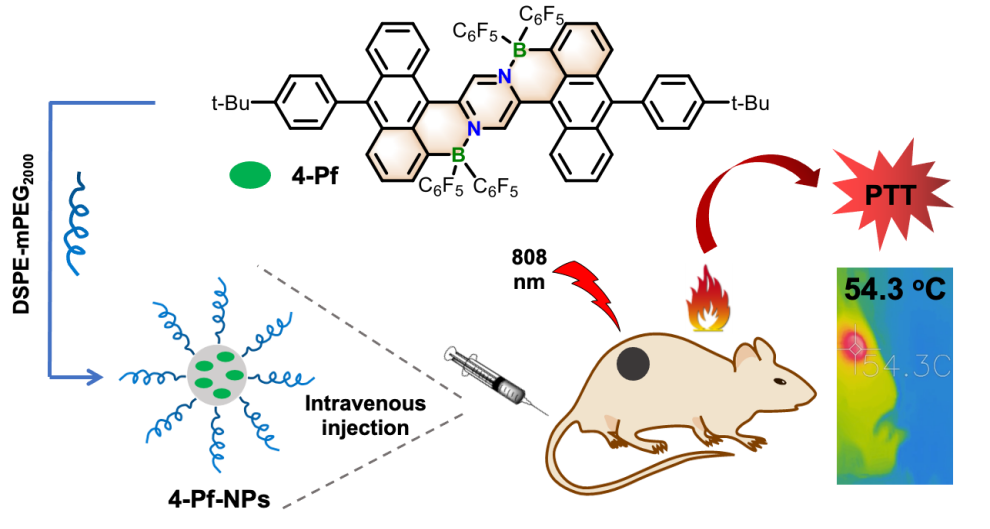 图1. 硼氮稠合二蒽基吡嗪化合物的光热治疗示意图