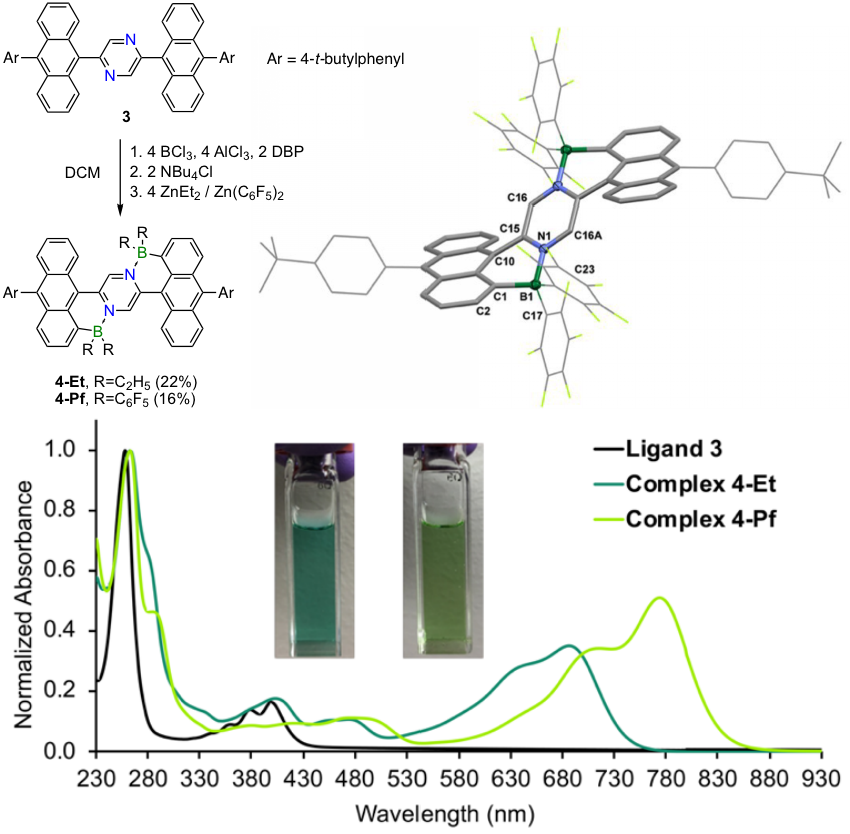 这项研究成功制备了硼氮稠合的二蒽基吡嗪化合物,展示了稠环芳烃的硼氮路易斯酸碱对功能化是一种开发新型高效光热剂的新策略,促进了基于硼氮稠环芳烃的近红外吸收材料的探索以及未来用于肿瘤光热治疗的应用。