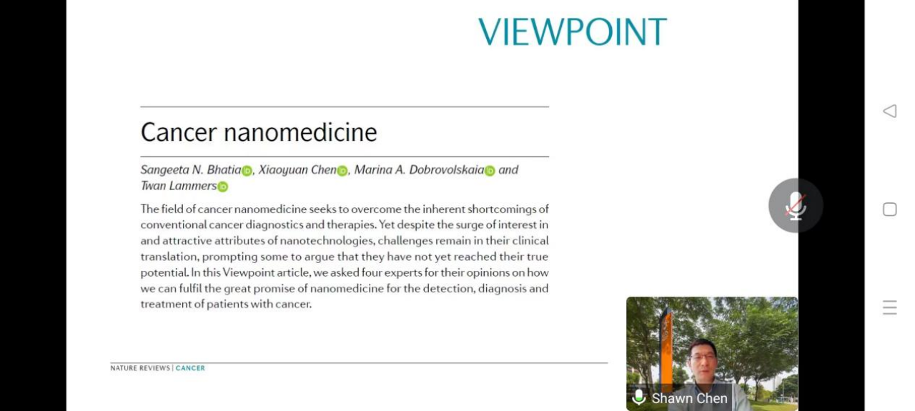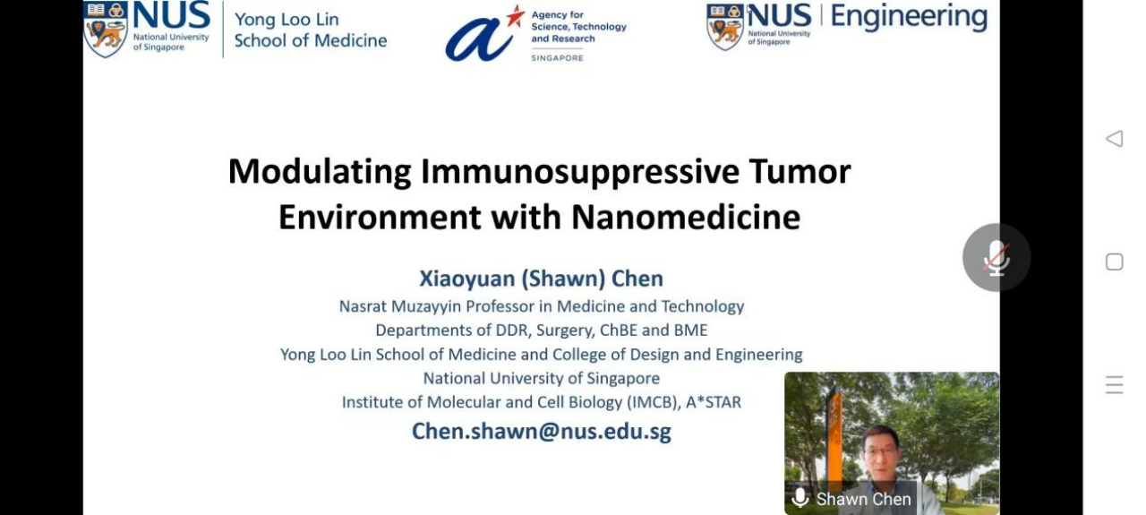 【21世纪学科前沿】新加坡国立大学陈小元教授 受邀作题为“Modulation of immunosuppressive tumor microenvironment with nanomedicine”的学术报告