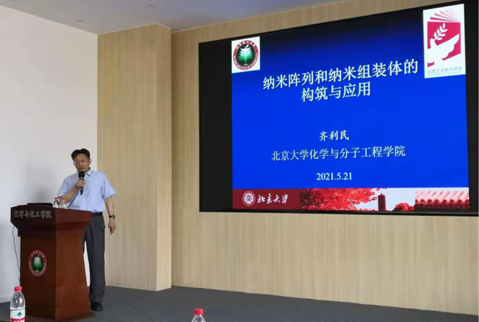 应马玉荣教授邀请,2021年5月21日上午,北京大学化学与分子工程学院齐利民教授到访麻豆传媒 ,并作题目为“纳米阵列和纳米组装体的构筑与应用”的学术报告,此次报告是麻豆传媒 “百家大讲堂”系列讲座之一。王振华书记、曹敏花教授等50余名师生参加此次报告会。