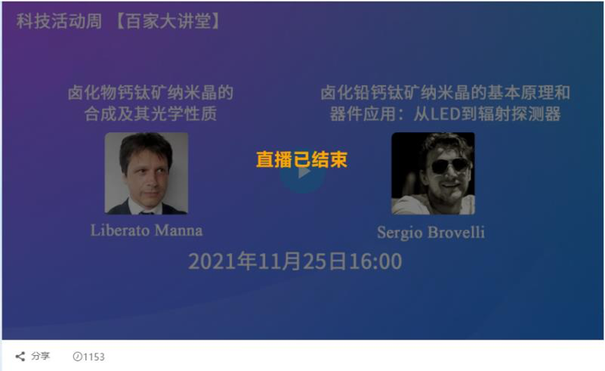 【百家大讲堂】意大利理工学院Liberto Manna教授和意大利米兰比可卡大学Sergio Brovelli教授应邀线上报告
