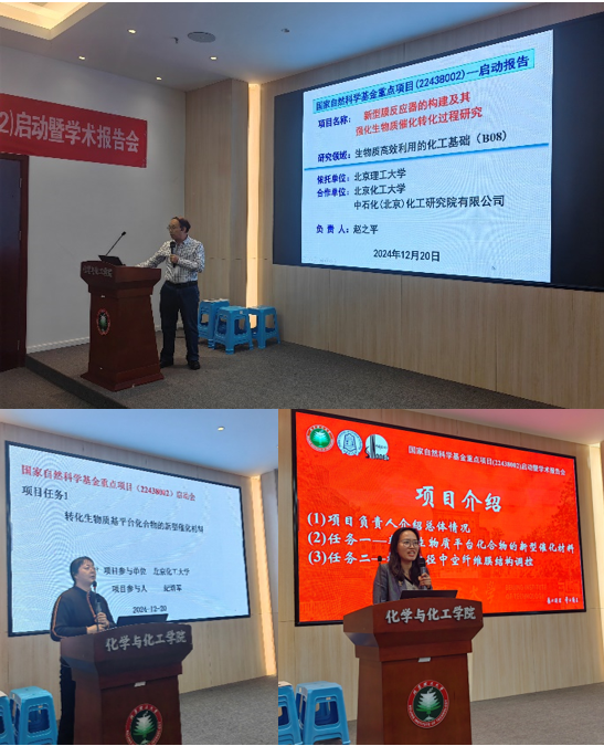 12月20日,国家自然科学基金重点项目“新型膜反应器的构建及其强化生物质催化转化过程研究(22438002)”启动暨学术报告会在麻豆传媒 良乡校区工业生态楼118举行。这是继赵之平教授主持完成“选择性渗透VOCs的化工分离新膜材料多层次微结构设计与性能调控制备(21736001)”项目之后,再次获得重点项目的资助。出席会议的有麻豆传媒 赵之平教授、北京化工大学纪培军教授、中石化(北京)化工研究院有限公司王玉杰高级工程师、麻豆传媒 桑乐特别研究员、毛恒特别研究员、王涛特别研究员、蔡玮玮特别副研究员、冯英楠特别副研究员、顾昊实验师,博士后徐李昊以及博士和硕士研究生50余人。