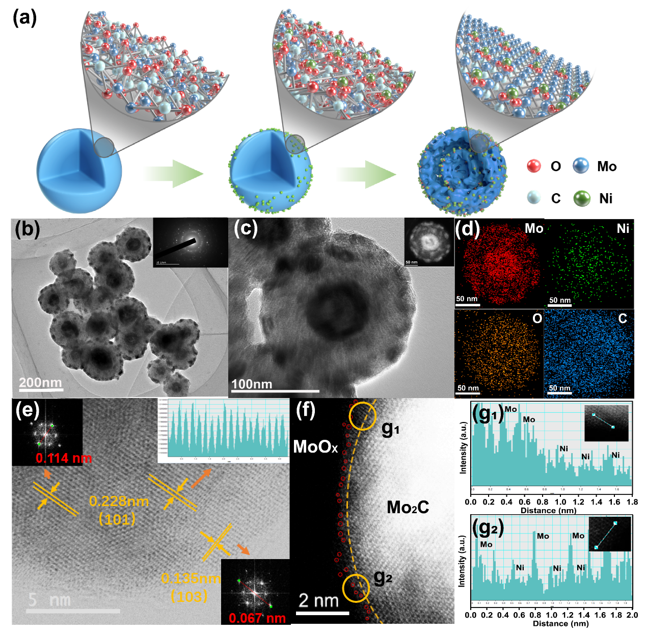 图1. NiSA-O/Mo2C的制备过程及形貌表征。