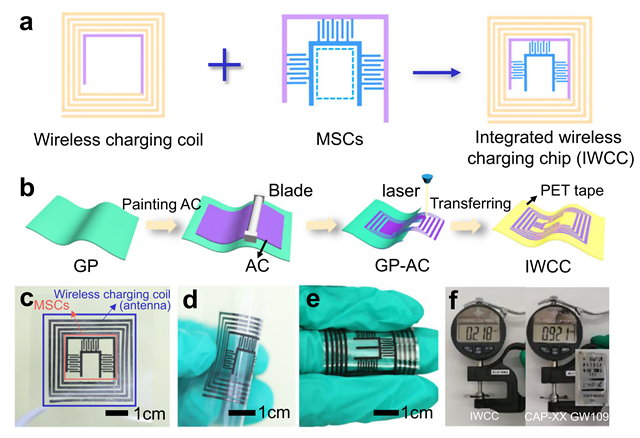 图2. 一体化无线充电微型超级电容器的设计原理、制备及展示