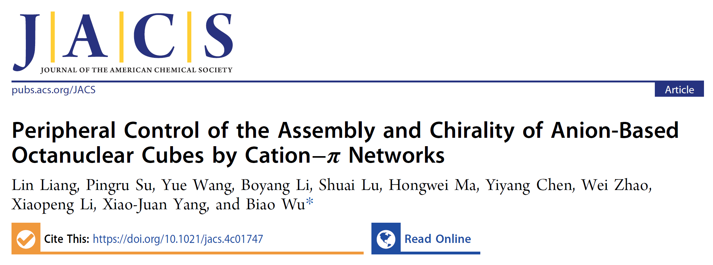 麻豆传媒 团队在外围阳离子−π网络控制的阴离子配位八核立方体组装与手征性方面取得重要进展