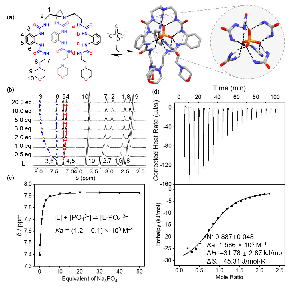 磷酸盐无处不在,与生产生活息息相关。开发用于识别、传输和分离水溶液中磷酸盐物种的化学工具对于农业、工业、生命科学和环境保护具有重要意义。然而,磷酸根离子的高度水合化会削弱受体分子和磷酸根之间的静电作用和氢键强度,从而削弱受体对PO43-的亲和力。水中磷酸根的识别仍然是现代超分子化学的一个关键挑战。