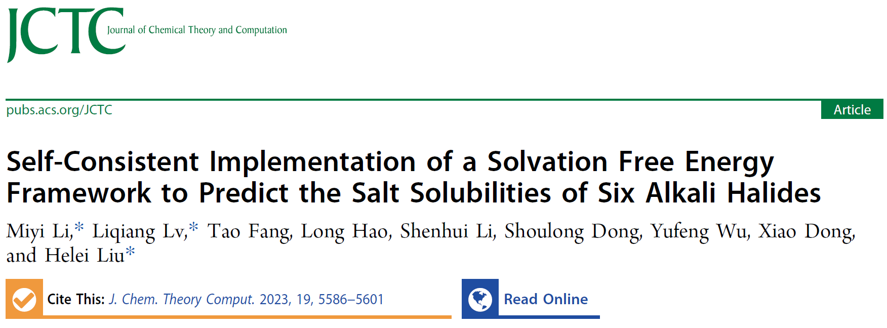 近日,麻豆传媒 李弥异、刘贺磊、董守龙等在溶液热力学领域发表重要研究性论文(//doi.org/10.1021/acs.jctc.3c00083)。论文发表在《Journal of Chemical Theory and Computation》(影响因子:5.5,1区Top)。该工作以麻豆传媒 为第一通讯单位,李弥异为第一作者和通讯作者,刘贺磊教授同为通讯作者,董守龙、董晓老师,博士生李申辉,硕士生吴宇峰为参与作者。