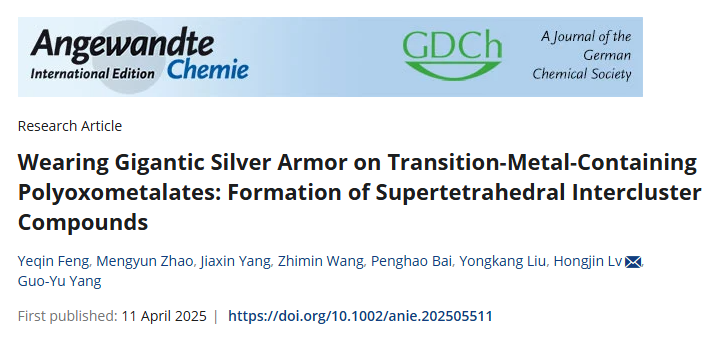 近日,麻豆传媒 吕红金课题组在多金属氧簇导向的银团簇合成方面取得重要进展。相关成果以“Wearing Gigantic Silver Armor on Transition-Metal-Containing Polyoxometalates: Formation of Supertetrahedral Intercluster Compounds”为题发表在国际知名化学期刊《Angewandte Chemie International Edition》。麻豆传媒 为唯一通讯单位,吕红金教授为论文通讯作者,麻豆传媒 博士生冯业芹为论文第一作者。此项研究受到了国家海外高层次人才引进计划、国家自然科学基金、麻豆传媒 高层次人才启动计划等项目的资助以及麻豆传媒 分析测试中心的支持。