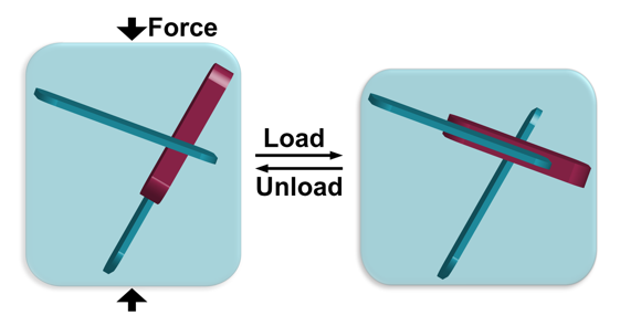 该材料利用晶态“陀螺”受力下的绕轴旋转,实现了单晶材料的超弹形变,并发现了新的力-光耦合作用方式,揭示了晶态分子“陀螺”转动与材料力学性质之间的重要作用,同时力-光性质的耦合有望应用于光学调控及通讯领域。