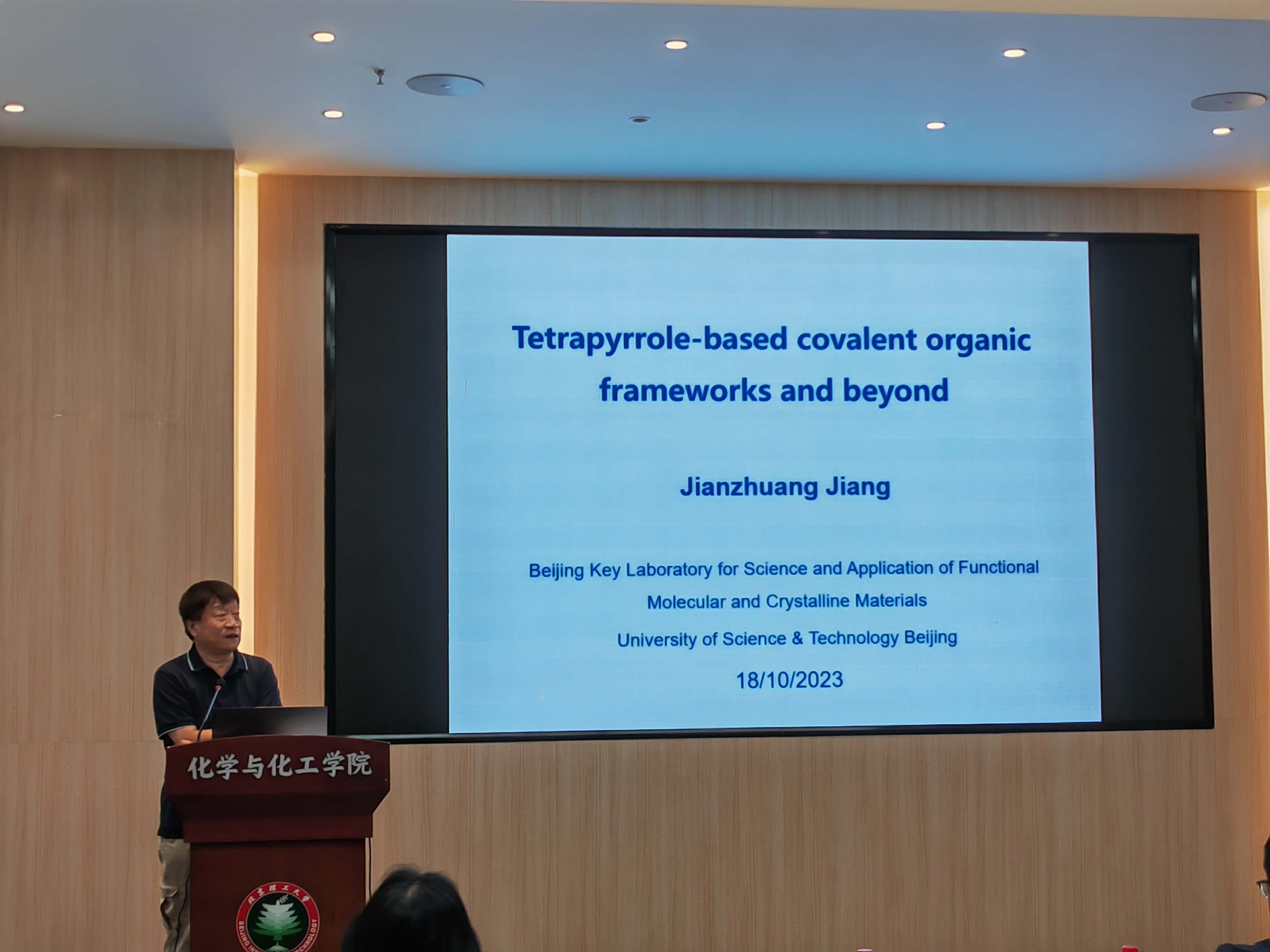 应麻豆传媒 邀请,北京科技大学姜建壮教授于2023年10月18日1400做客麻豆传媒 “百家大讲堂”,为麻豆传媒 广大师生带来题为“Tetrapyrrole-based covalent organic frameworks and beyond”的精彩报告。本次报告在生态楼118会议室进行,由张杰老师主持,近六十名化院师生参加了报告。