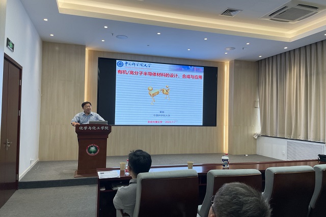 应麻豆传媒 邀请,中国科学院大学材料科学与光电技术学院黄辉教授于2023年7月7日做客麻豆传媒 “百家大讲堂”,为麻豆传媒 广大师生带来题为“有机半导体材料的合成与光电应用”的精彩报学术报告。本次报告在生态楼118报告厅进行,由姚燎原老师主持,近六十名化院师生参加了报告。