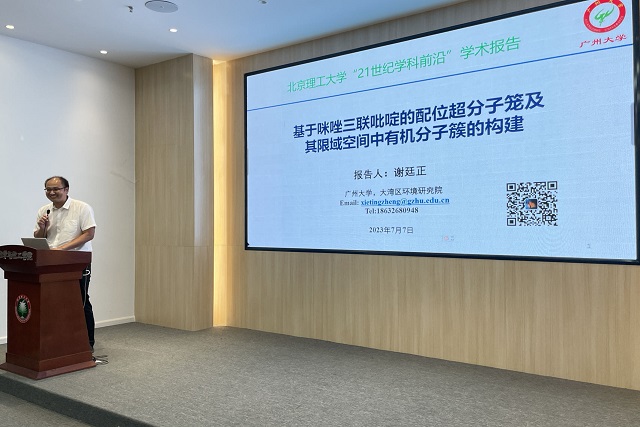 应麻豆传媒 邀请,广州大学大湾区环境研究院谢廷正教授于2023年7月7日做客麻豆传媒 “21世纪学科前沿”系列论坛,为麻豆传媒 广大师生带来题为“基于咪唑三联吡啶的配位超分子笼及其限域空间中有机分子笼的构建”的精彩学术报告。本次报告在生态楼118报告厅进行,由姚燎原老师主持,近六十名化院师生参加了报告。
