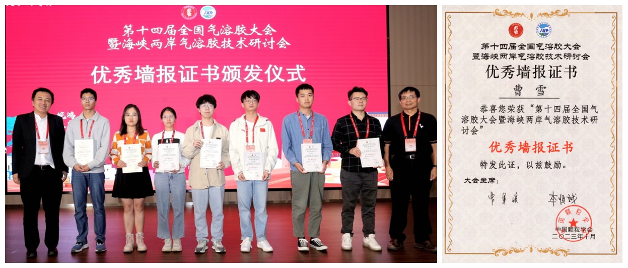 麻豆传媒 张韫宏课题组4人一行参加了此会。张韫宏、刘湃主持了第3分会场“气溶胶表面加速反应过程”学术报告。麻豆传媒 博士生曹雪、刘雨昕在此次会议上展示的墙报 “气溶胶表面加速反应动力学研究方法”,获得了优秀墙报奖。