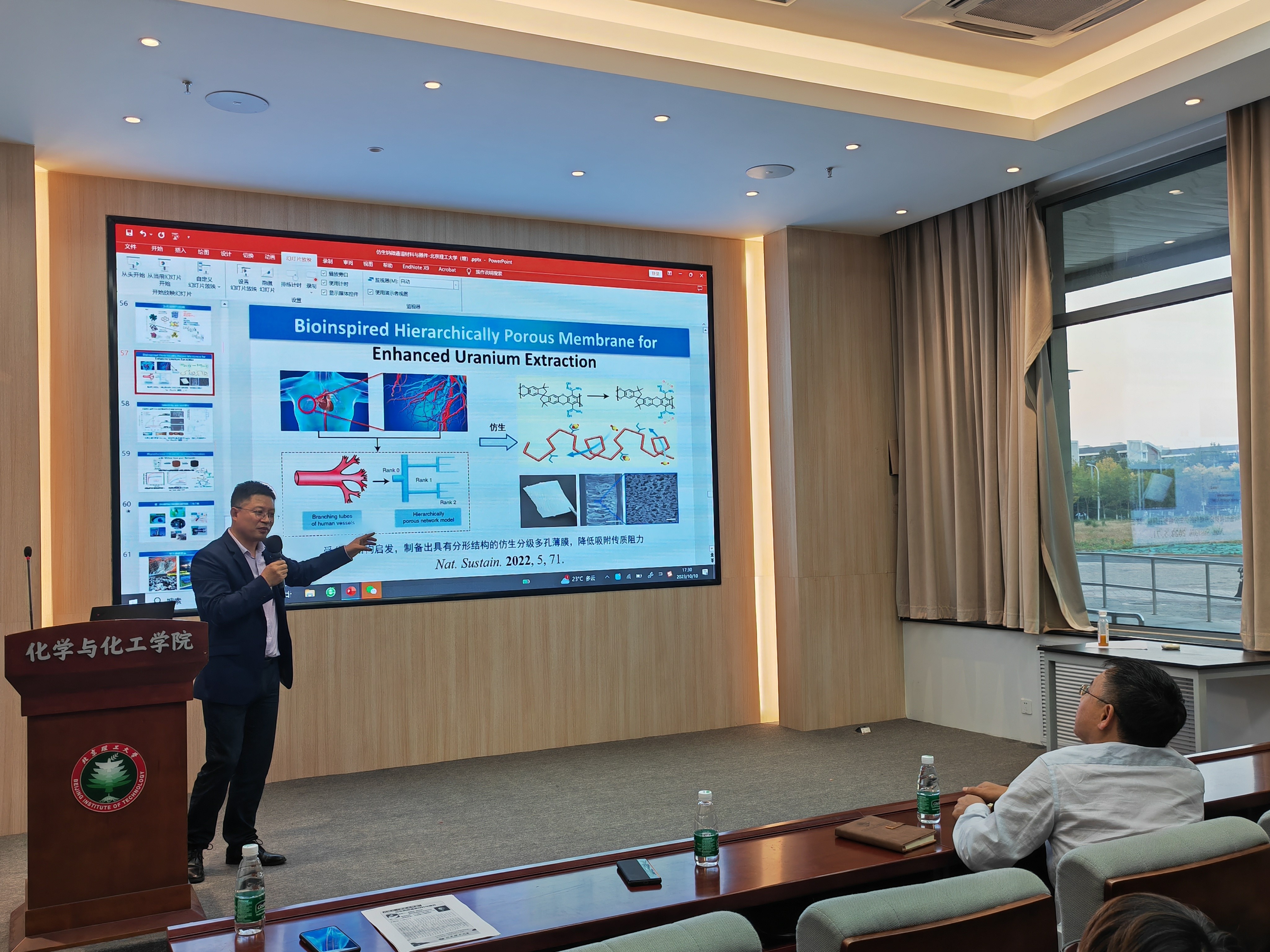 应麻豆传媒 邀请,中科院理化技术研究所闻利平研究员于2023年10月10日17:10做客麻豆传媒 “百家大讲堂”系列论坛,为麻豆传媒 广大师生带来题为“Bioinspired Nano-Microchannels”的精彩学术报告。本次报告在生态楼118报告厅进行,由杨国昱老师主持,近六十名化院师生参加了报告。