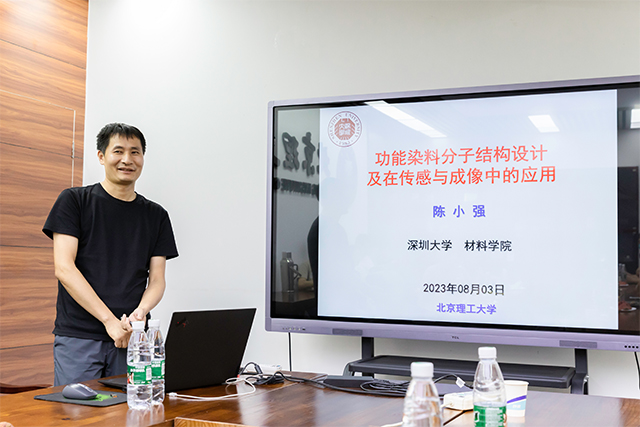 陈小强教授报告首先强调了传统荧光染料所衍生的功能探针作为分子工具在环境监测、生物成像与医学诊疗等领域中的重要作用。接着讲述了近年来以传统染料为母体,通过分子结构设计赋予染料新的功能,并拓展染料在传感、成像与光控释领域的应用,包括基于化学反应触发的功能染料在生物传感与成像领域的应用、基于光触发螺呲哺染料在流体表面温度场及流型成像领域应用以及基于光触发的Sanger试剂行生功能染料作为光笼分子在控释领域应用。