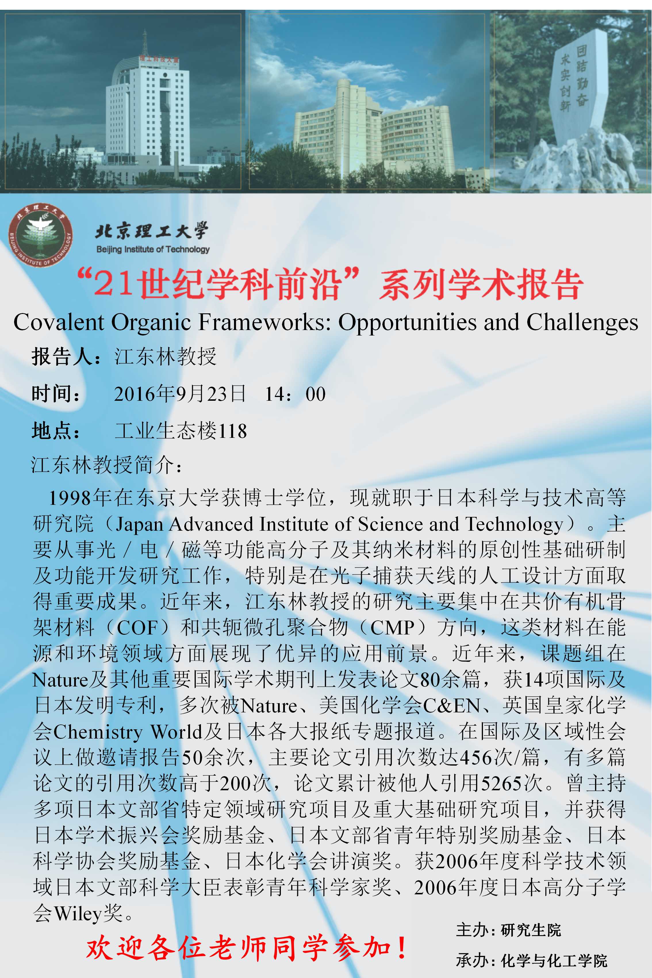 】“21世纪学科前沿”江东林教授学术讲座通知