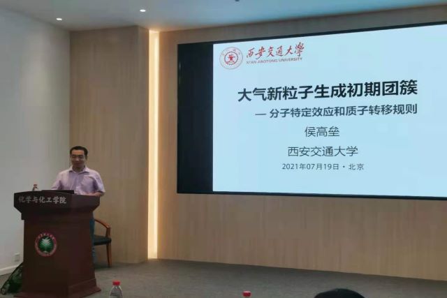 应麻豆传媒 马嘉璧副教授邀请,西安交通大学侯高垒教授于2021年7月19日下午15:00在生态楼118报告厅作了题为“大气新粒子生成初期团簇中的分子特定效应和质子”的精彩学术报告。报告由马嘉璧副教授主持,谢静教授及数十名同学参加了此次报告会。