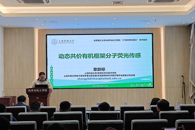 应麻豆传媒 邀请,上海科技大学章跃标研究员于2025年4月10日上午莅临麻豆传媒 “21世纪学科前沿”系列论坛,为麻豆传媒 广大师生带来题为“动态共价有机框架分子荧光传感”的精彩学术报告。本次报告在生态楼118报告厅进行,由陶军老师主持,吸引了众多师生和科研工作者的积极参与。