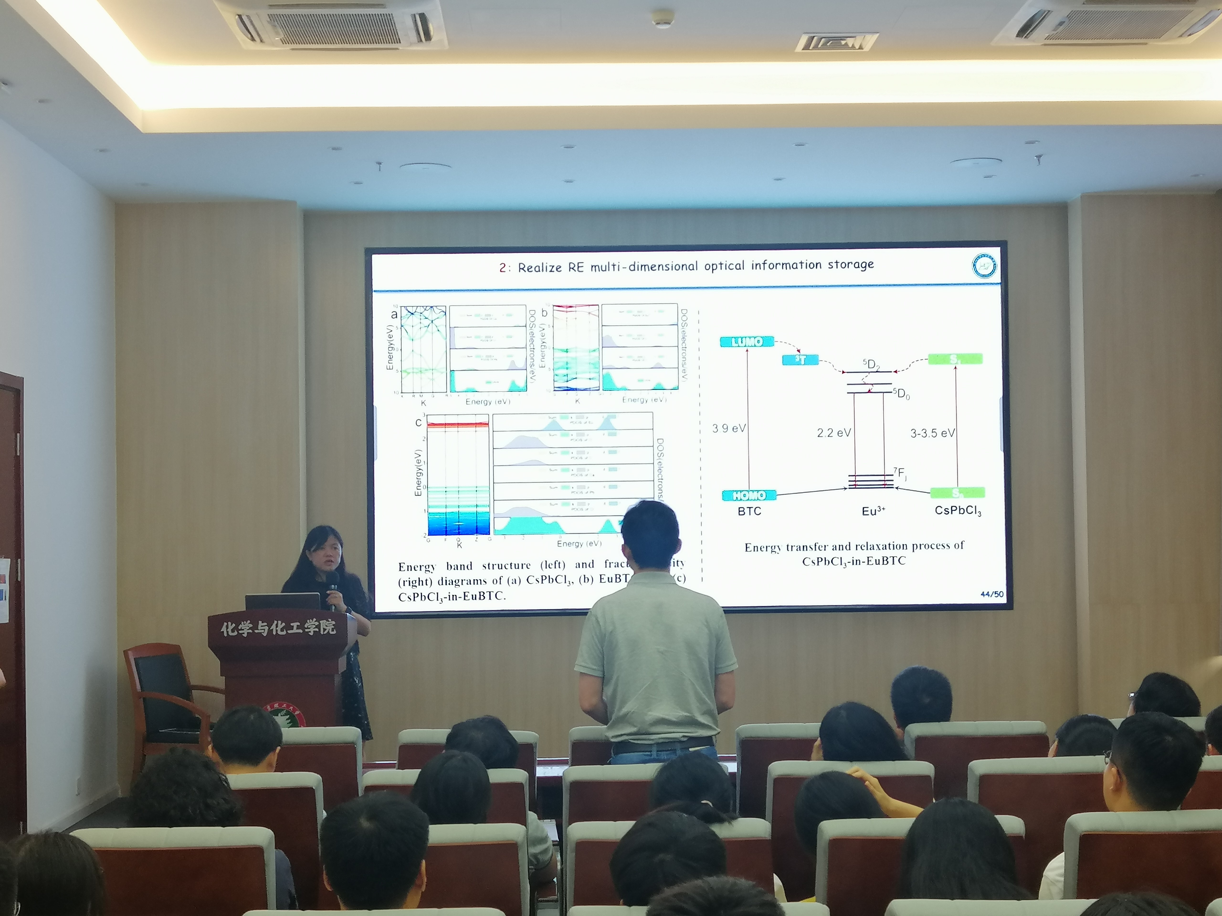 应麻豆传媒 邀请,兰州大学唐瑜教授于2021年7月21日16:00做客麻豆传媒 “百家大讲堂”,为麻豆传媒 广大师生带来题为“新型稀土配合物智能发光材料研究”的精彩学术报告。本次报告在生态楼118报告厅进行,由杨国昱老师主持,近六十名化院师生参加了报告。