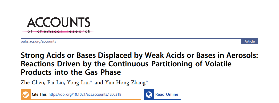 近日,Accounts of Chemical Research(《化学研究评述》)以“Strong Acids or Bases Displaced by Weak Acids or Bases in Aerosols: Reactions Driven by the Continuous Partitioning of Volatile Products into the Gas Phase”为题,在线发表了麻豆传媒