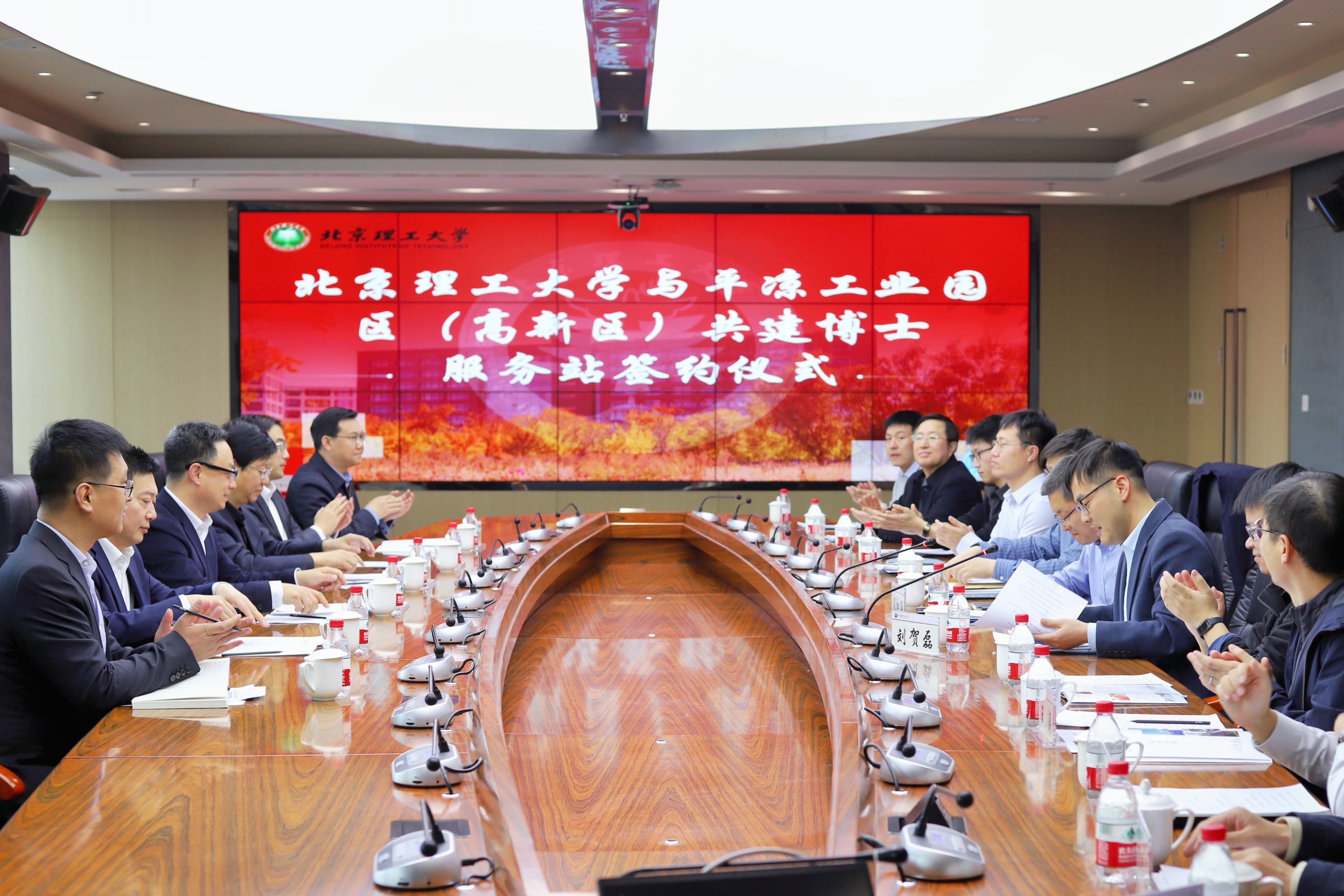 院长张加涛和平凉工业园区(高新区)党工委书记、管委会主任马春宁代表双方签署了共建博士服务站合作协议。签约仪式结束后,平凉市一行参观了校史馆。