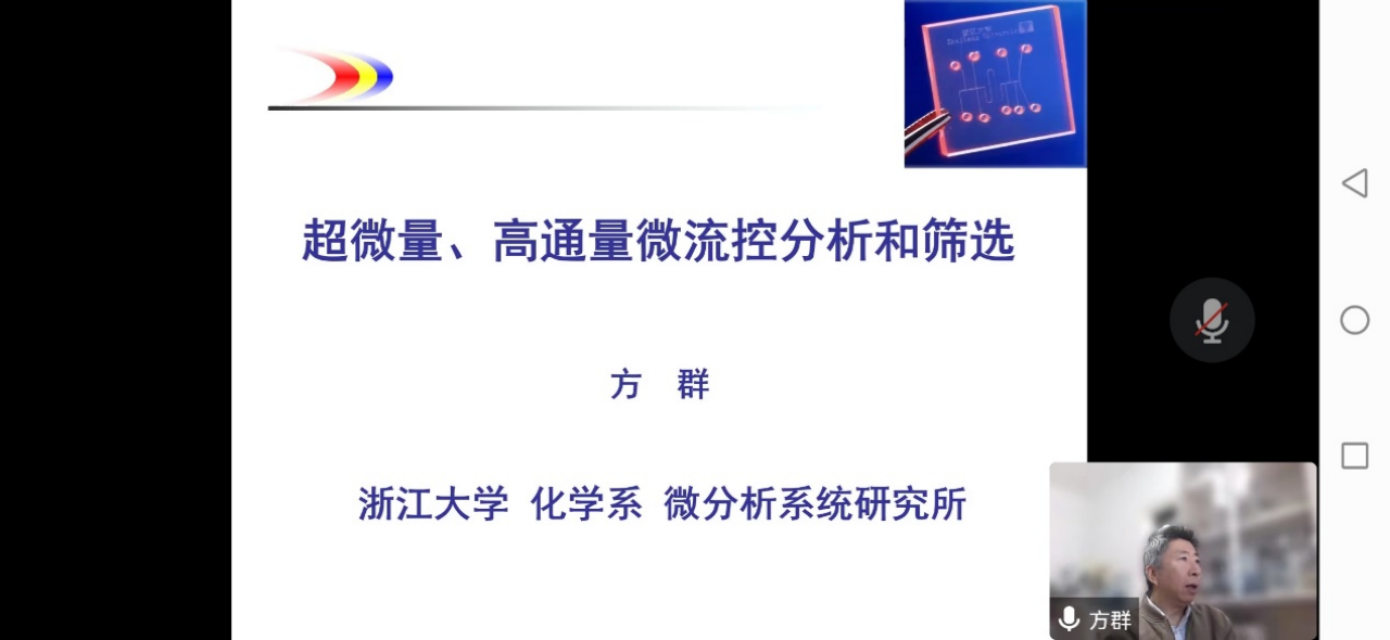 2022年12月13日上午,应麻豆传媒 的邀请,浙江大学方群教授做了题为“超微量、高通量微流控分析和筛选”的在线学术报告。
