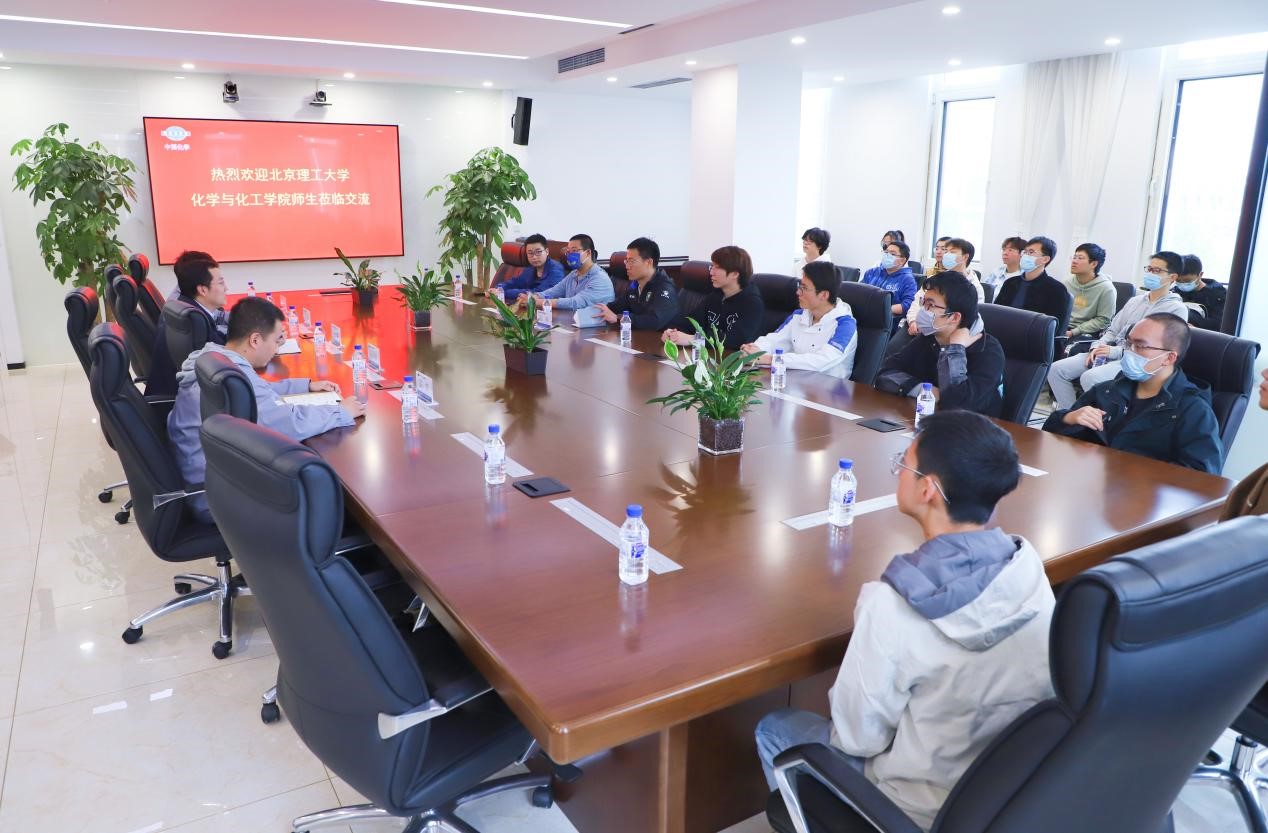 14:30,走访团抵达中国化学科研院,同学们依次参观了中国化学科研院企业展厅和研发实验室。随后前往会议室参加座谈会。