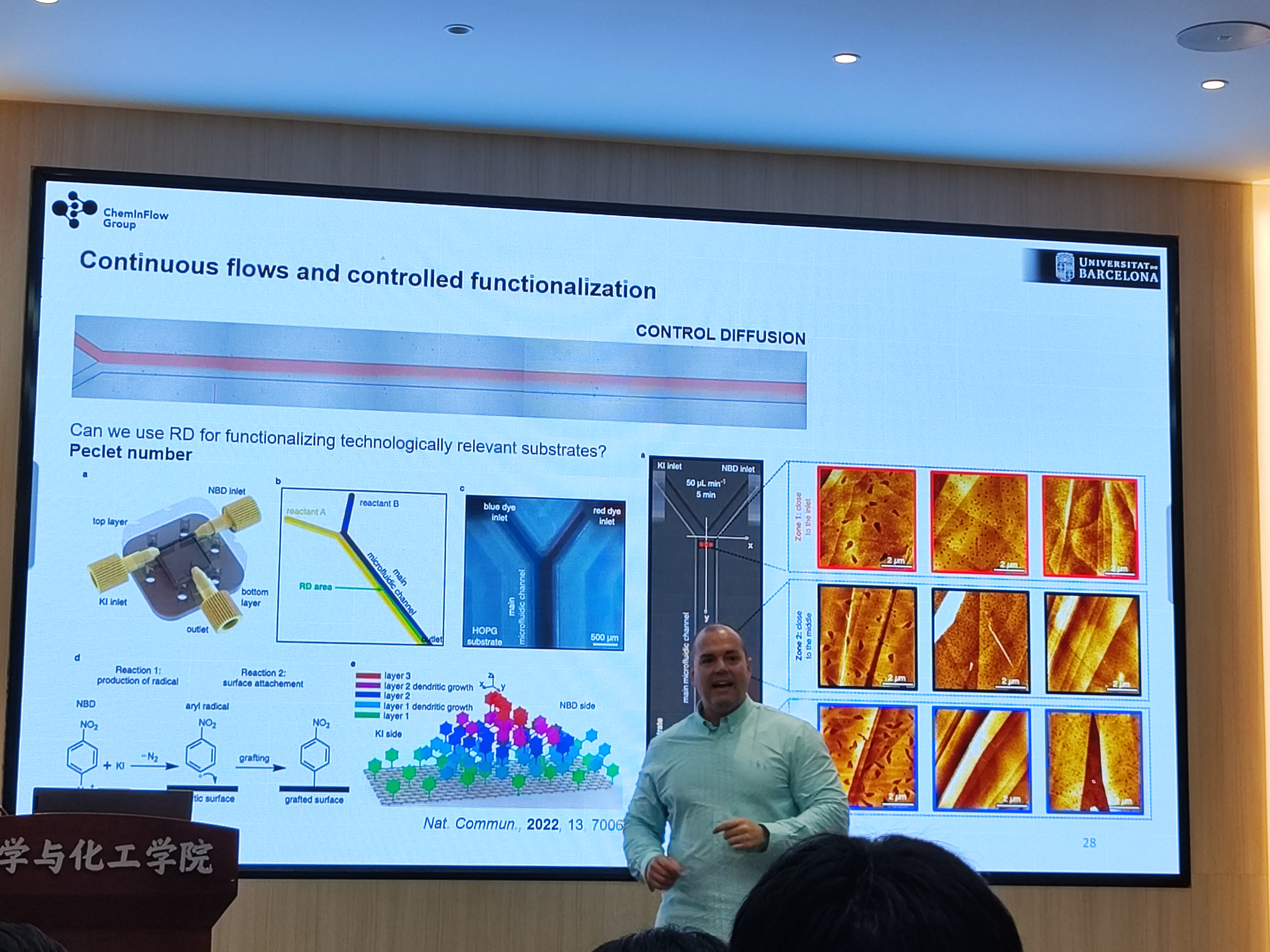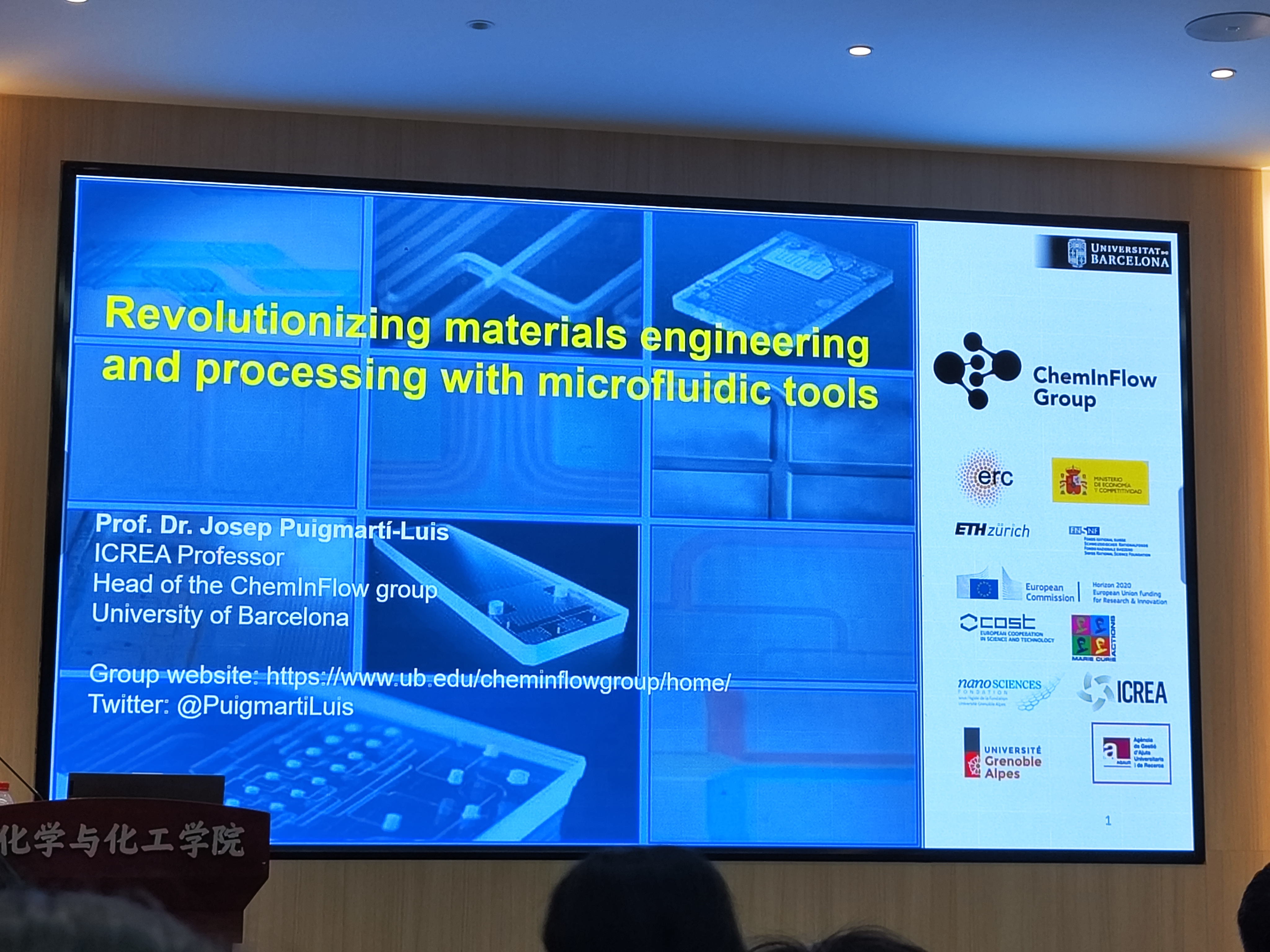 Josep Puigmartí-Luis教授首先介绍了控制和理解控制结晶过程的机制在当代材料科学中重要性,并展示了如何通过微流控合成控制各种功能性多孔晶体的尺寸和形状,如Metal-organic frameworks ( MOFs )和共价有机骨架covalent-organic frameworks ( COFs )。