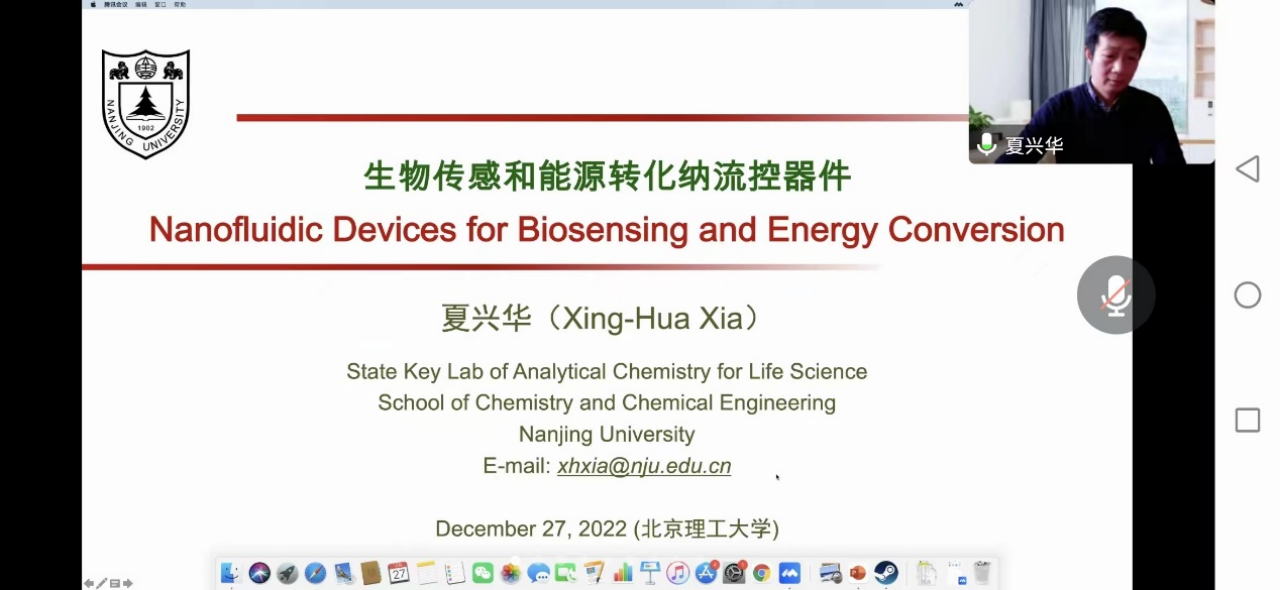 2022年12月27日上午,应麻豆传媒 的邀请,南京大学夏兴华教授做了题为“生物传感和能源转化纳流控器件”的在线学术报告。