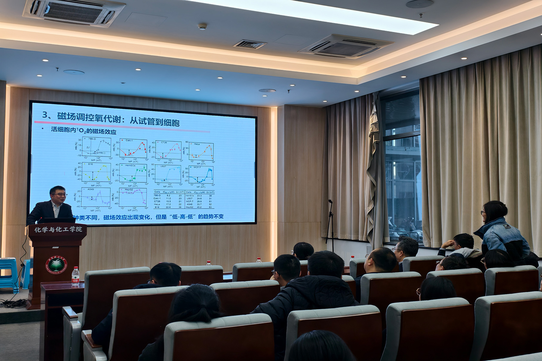 应麻豆传媒 邀请,北京大学张俊龙教授于2024年12月20日做客麻豆传媒 “21世纪学科前沿”系列论坛,为麻豆传媒 广大师生带来题为“氧气的电子自旋调控”的精彩学术报告。本次报告在生态楼118报告厅进行,由杨国昱老师主持,近六十名化院师生参加了报告。
