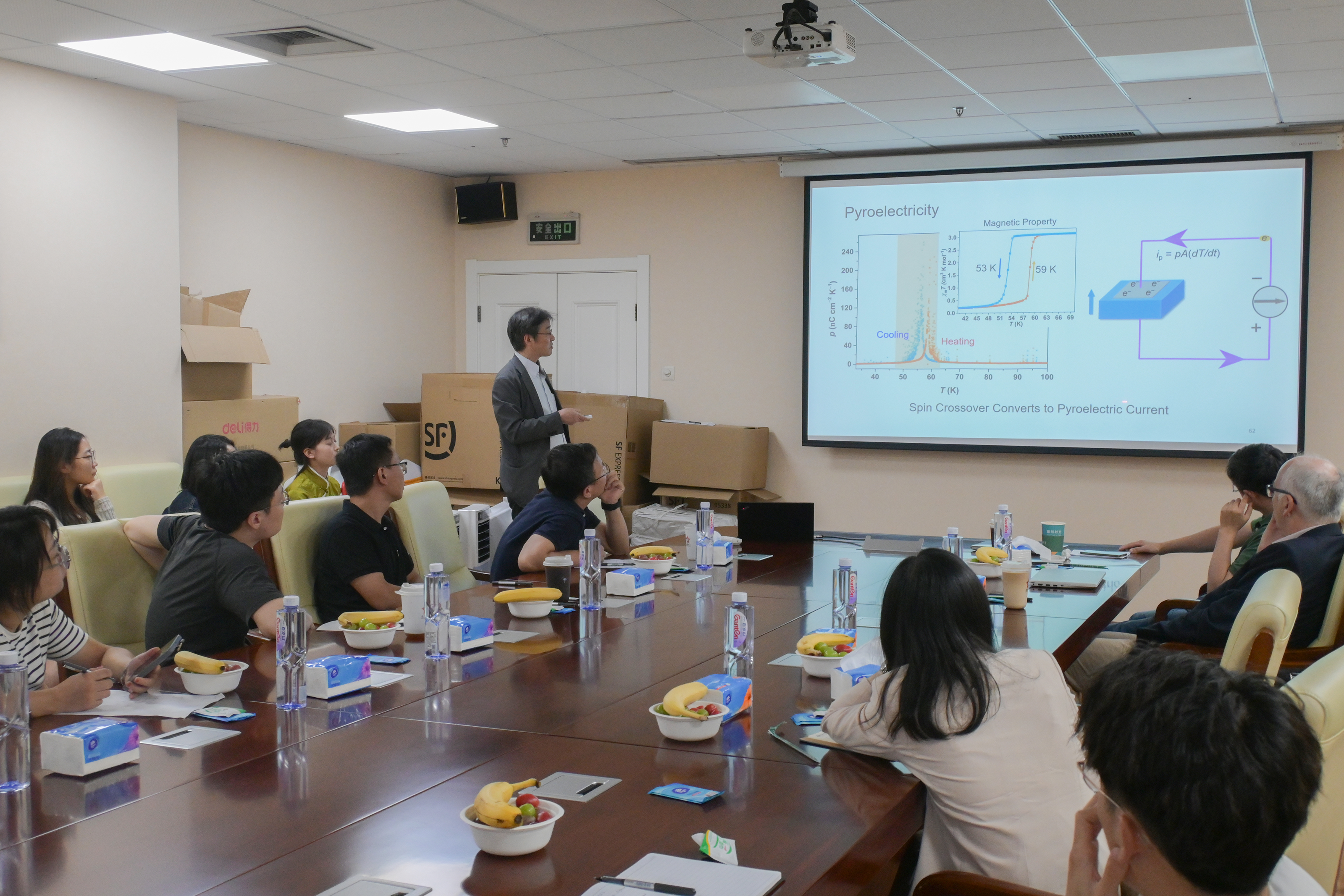 在报告会交流环节,Sato教授与陶军副院长、姚子硕等老师就磁性与电学晶体的设计思路进行了热烈的探讨,对在同学们提出的问题做了深入细致的解答,与会师生收获颇丰。