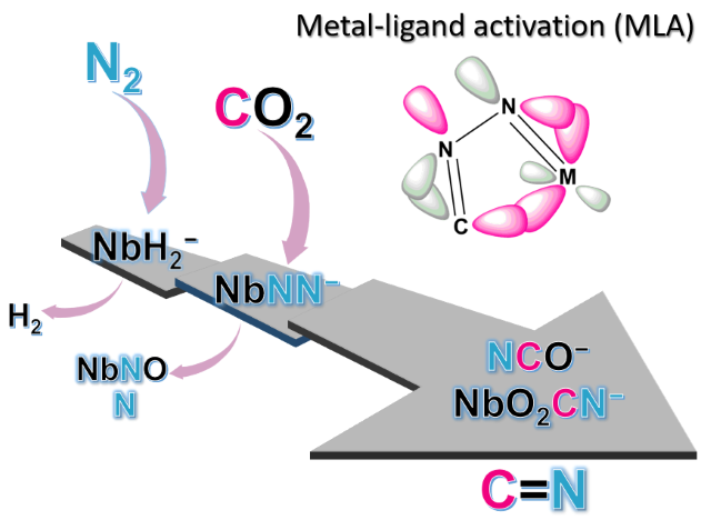 图1. NbH2−与N2和CO2顺次反应示意图。