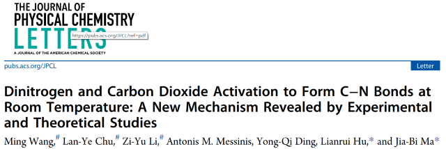 N2和CO2均是非常惰性的小分子,在温和条件下活化并偶联N2和CO2以直接形成C−N键将其转化为有价值的化学产品极具挑战性。目前仅有几例凝聚相物种能够直接偶联N2和CO2形成含C−N键的化合物,且均需要施加外场,如异氰酸酯的光解合成和N2和CO2的电催化偶联来合成尿素等。目前关于气相含金属离子介导的N2活化和转化的研究已被报道,通常需要多核过渡金属原子作为活性位点来实现N≡N键裂解。2019年,马嘉璧副教授团队发现Ta3N3H−和Ta3N3−团簇可以彻底活化N2分子,生成吸附产物Ta3N5H−和Ta3N5−,在反应过程中N2还原的活性位点分别是2个和3个Ta原子(J. Am. Chem. Soc. 2019, 141, 12592-12600)。在N2活化的基础上,如能进一步实现N2的转化直接形成C−N键对于金属有机或配位化学等具有非常重要的研究意义。