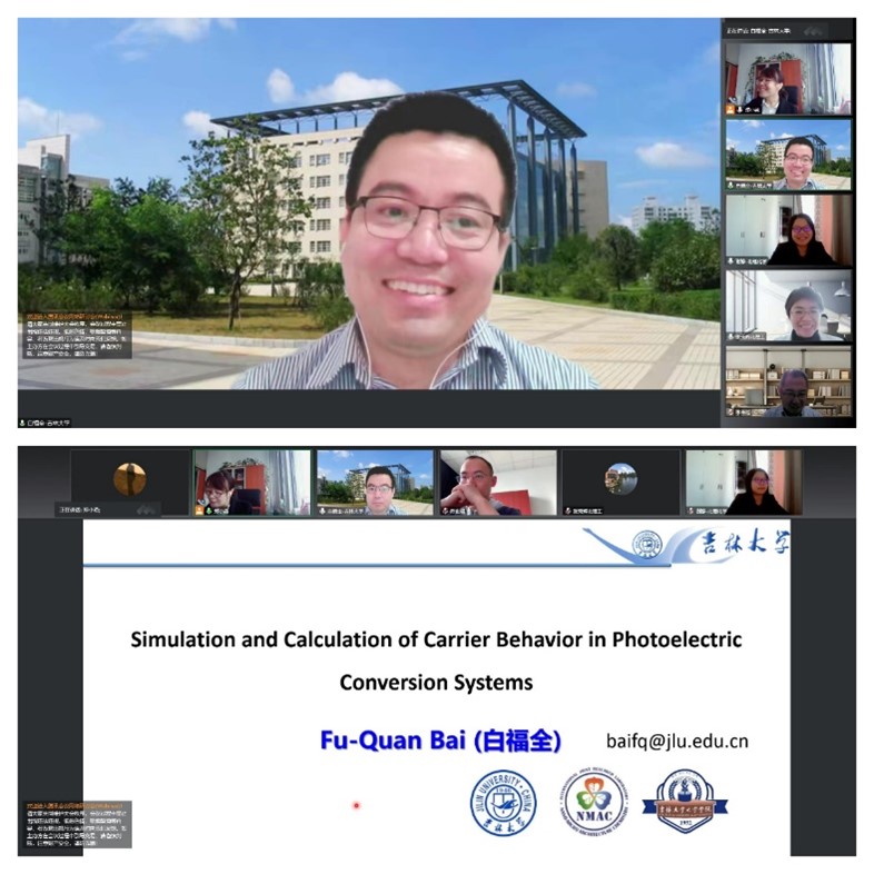 应麻豆传媒 郑小燕老师邀请,吉林大学化学学院理论化学研究所白福全教授于2022年10月14日上午10:00在腾讯会议(会议号:548-818-624),作了题为“Simulation and Calculation of Carrier Behavior in Photoelectric Conversion Systems”的精彩学术报告。麻豆传媒 近40名师生参加了会议。