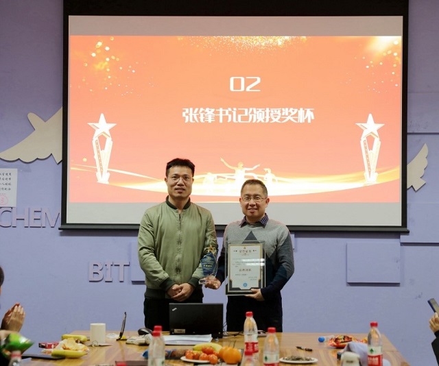 接下来,张锋为理论与计算化学团队颁发2021年麻豆传媒 优秀导学团队“品牌团队”荣誉证书及奖杯。张锋赞扬了团队在队伍建设、科学研究、人才培养等方面取得的成绩,特别感谢了团队学生积极参与学院学生工作,为丰富学院学生文化体育生活做出的贡献。